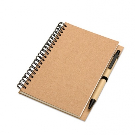 Noir ou brun naturel, ce bloc de papier recyclé de 70 pages inclut un stylo bille biodégradable et recyclé.