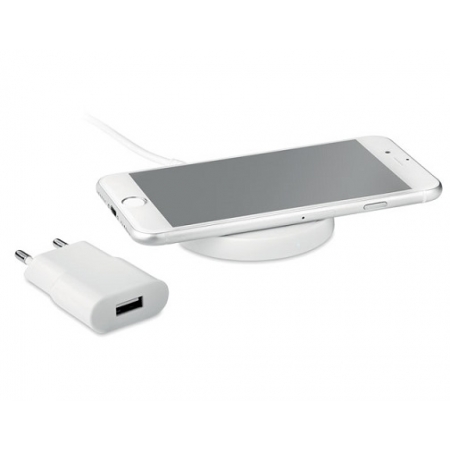 Set chargeur sans fil en ABS. Présenté dans une pochette EVA / PU. Contient une prise européenne et un câble de charge USB A vers Micro B. Données de sortie: DC5V / 1.0A.