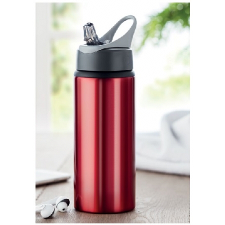 Bottiglia in alluminio singolo strato con beccuccio pieghevole sul tappo e gancio per appendere. 600ml.