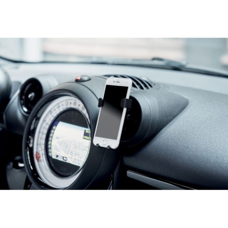 Porta cellulare universale per auto con dettagli in alluminio. Regolabile su diverse dimensioni del telefono cellulare.