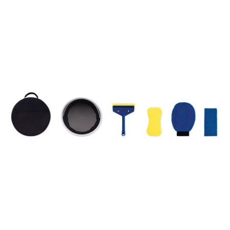 Kit di strumenti per la pulizia dell'auto in custodia con 1 spazzola, 1 guanto in microfibra, 1 spugna, 1 panno in microfibra, 1 secchio pieghevole.