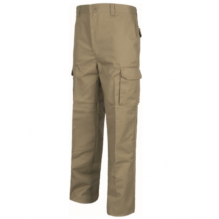 Pantalone multitasche, chiusura bottone e cerniera senza elastico in vita. Due tasche laterali aperte, due tasche nelle gambe con pattina e chiusura in velcro.Taschino posteriore interno con chiusura. Rinforzi posteriori e sulla ginocchia. Cordoncino regolabile sulle caviglie. 65% poliestere 35% cotone.